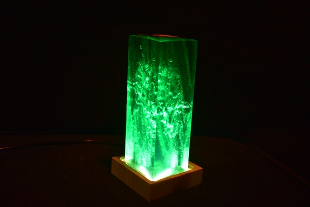 №0056:ウッドレジンナイトランプ ピラー型 ウッドレジンランプ エポキシ樹脂海 木製樹脂ランプ 間接照明 ギフト