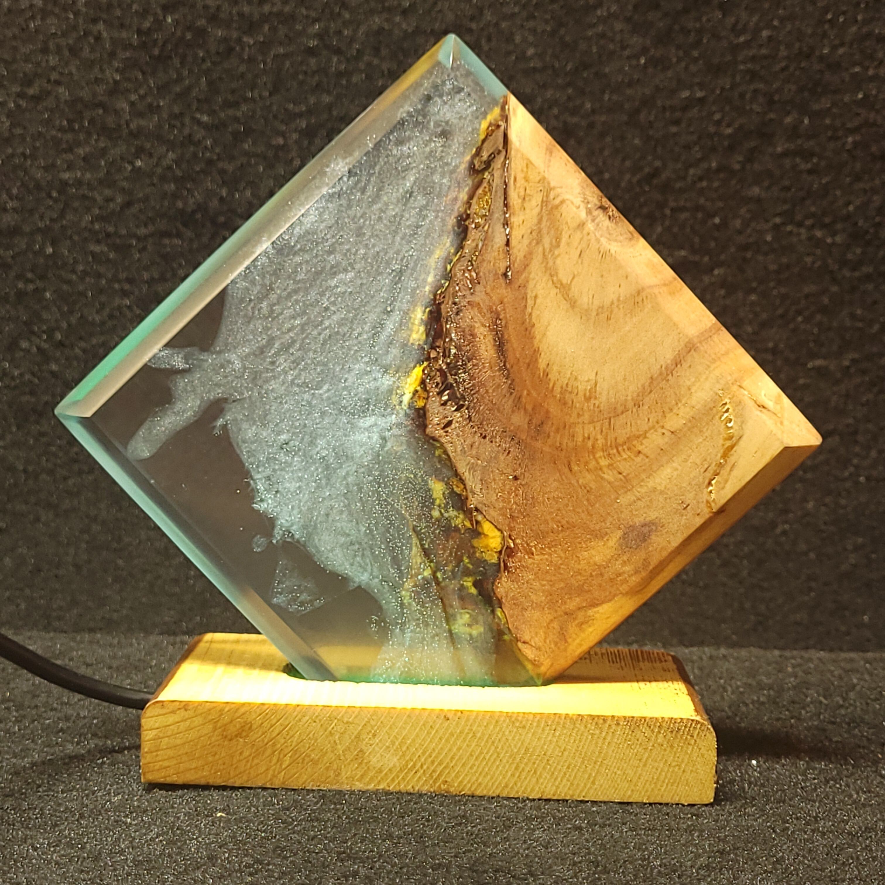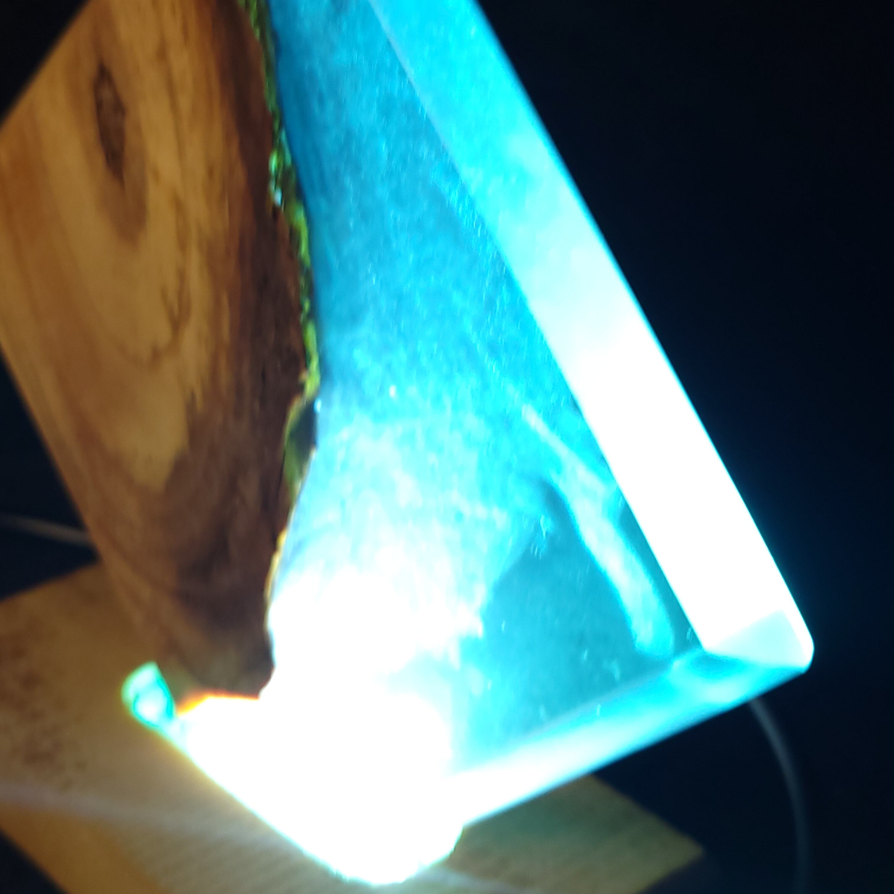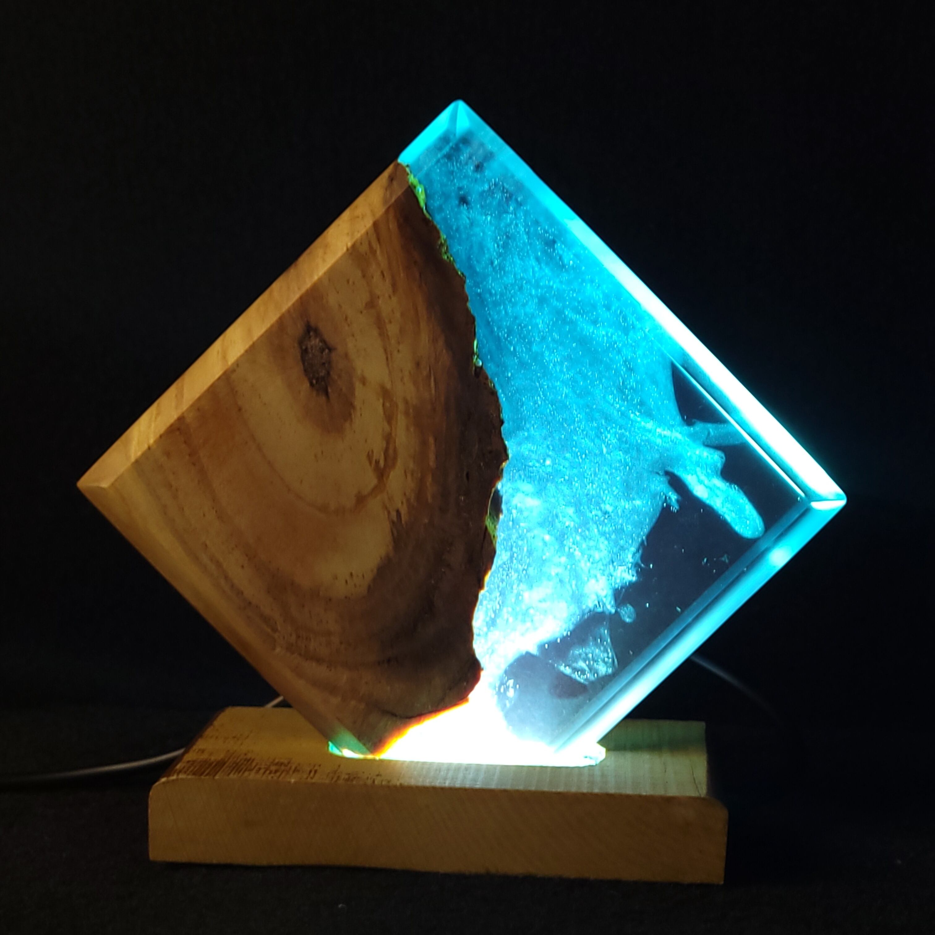 №083:ウッドレジンナイトランプ スクエア型 ウッドレジンナイトランプ スクエア型 エポキシ樹脂海 木製樹脂ランプ 間接照明 ギフト