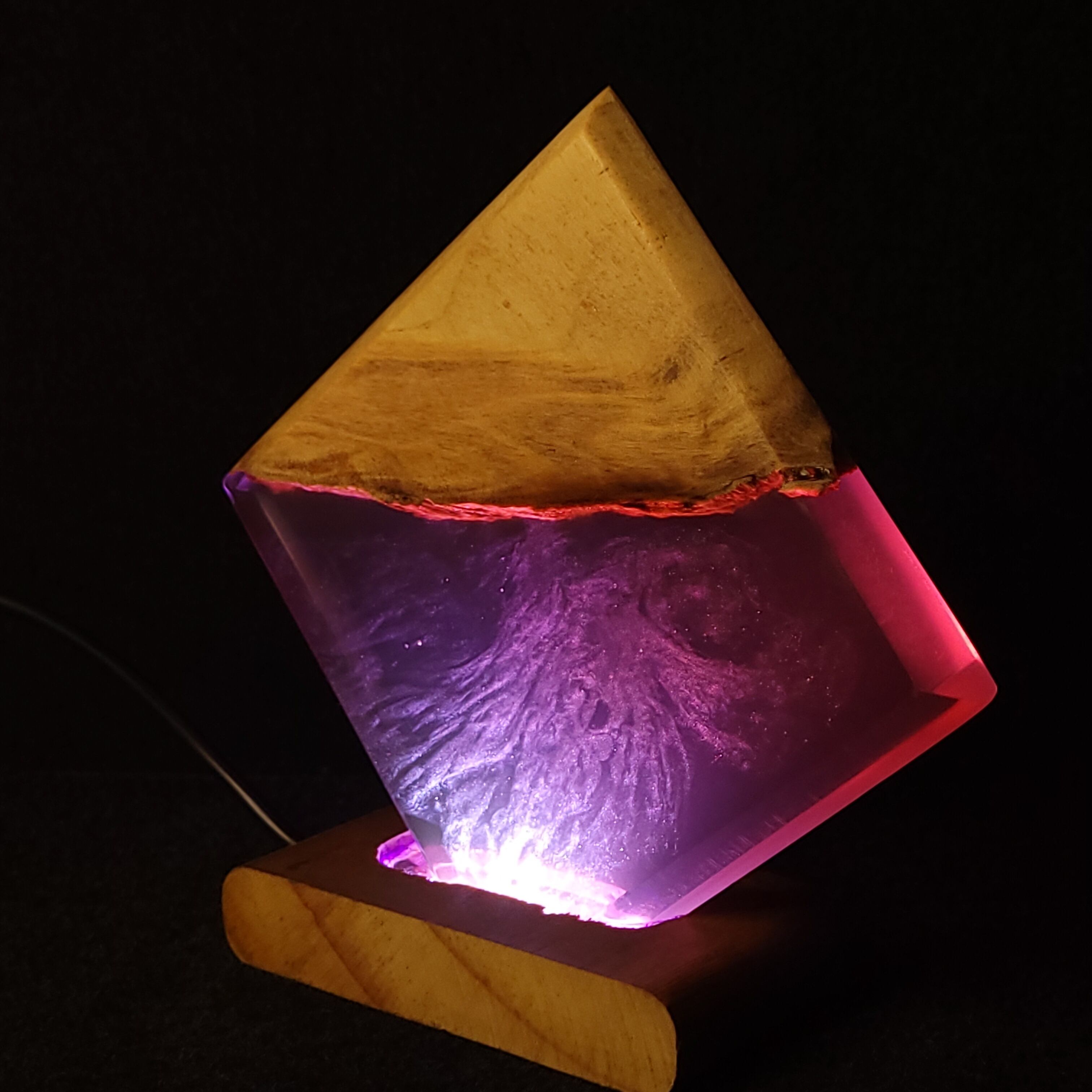№125:ウッドレジンナイトランプ スクエア型 ウッドレジンナイトランプ スクエア型 エポキシ樹脂海 木製樹脂ランプ 間接照明 ギフト
