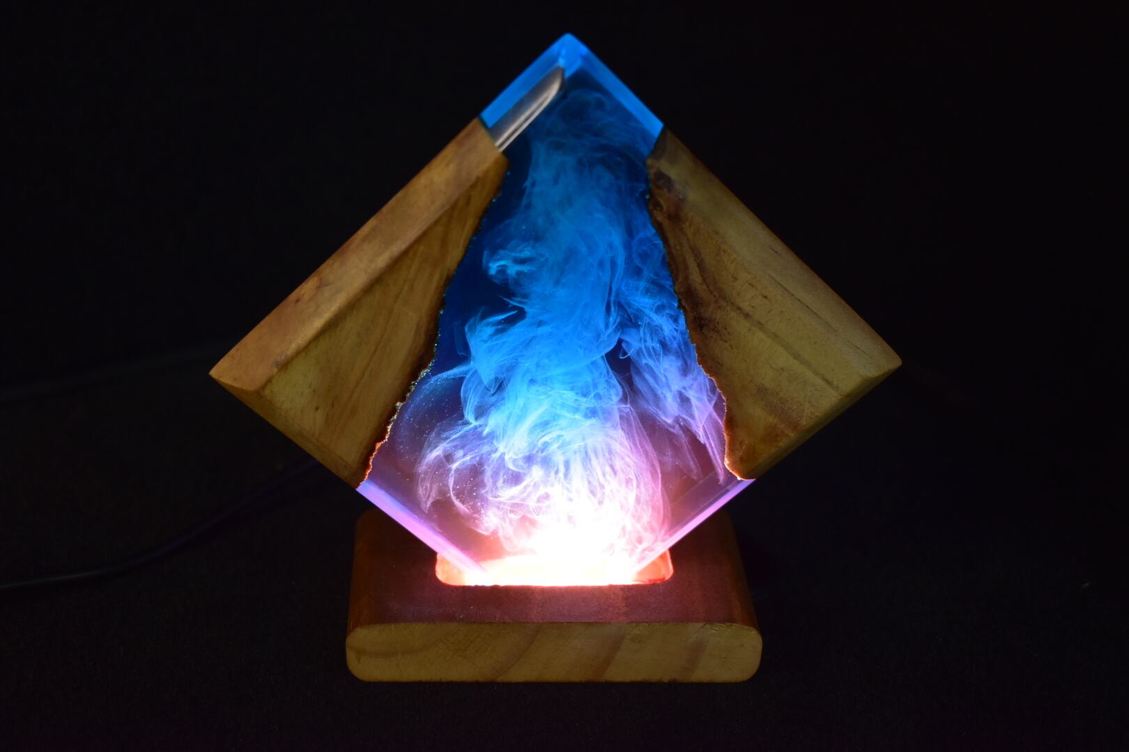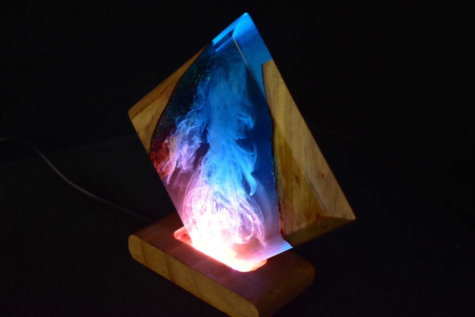 №167:ウッドレジンナイトランプ スクエア型 ウッドレジンナイトランプ スクエア型 エポキシ樹脂海 木製樹脂ランプ 間接照明 ギフト