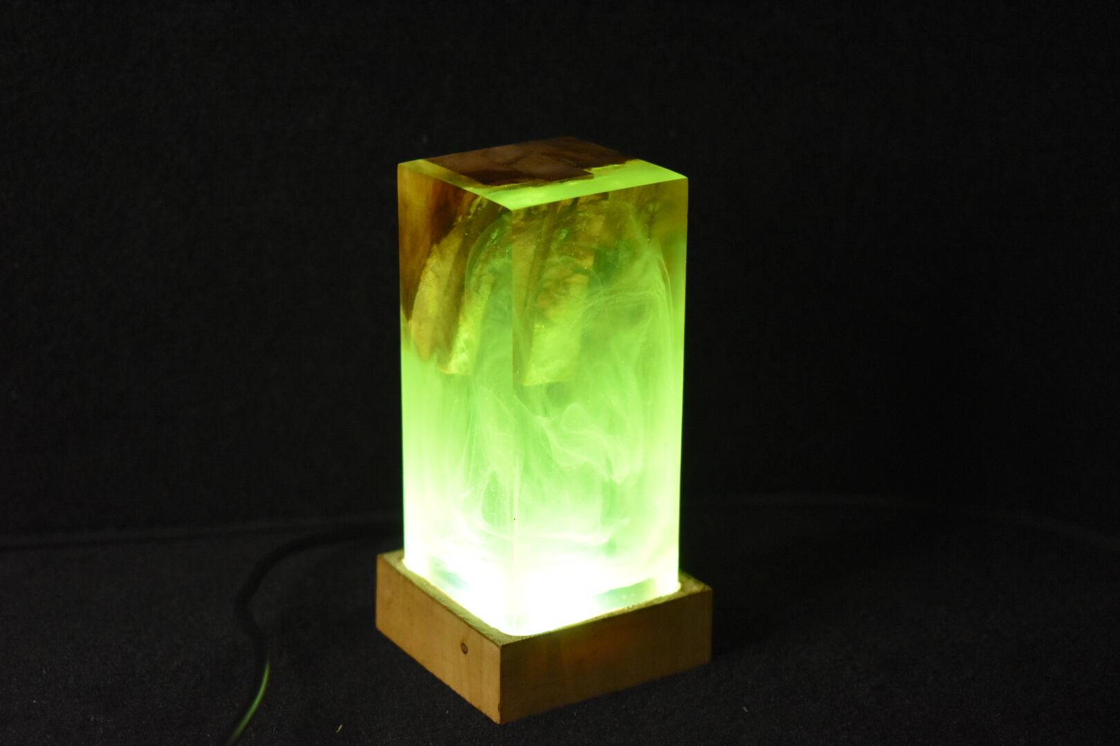 №0028:ウッドレジンナイトランプ ピラー型 ウッドレジランプ エポキシ樹脂海 木製樹脂ランプ 間接照明 ギフト