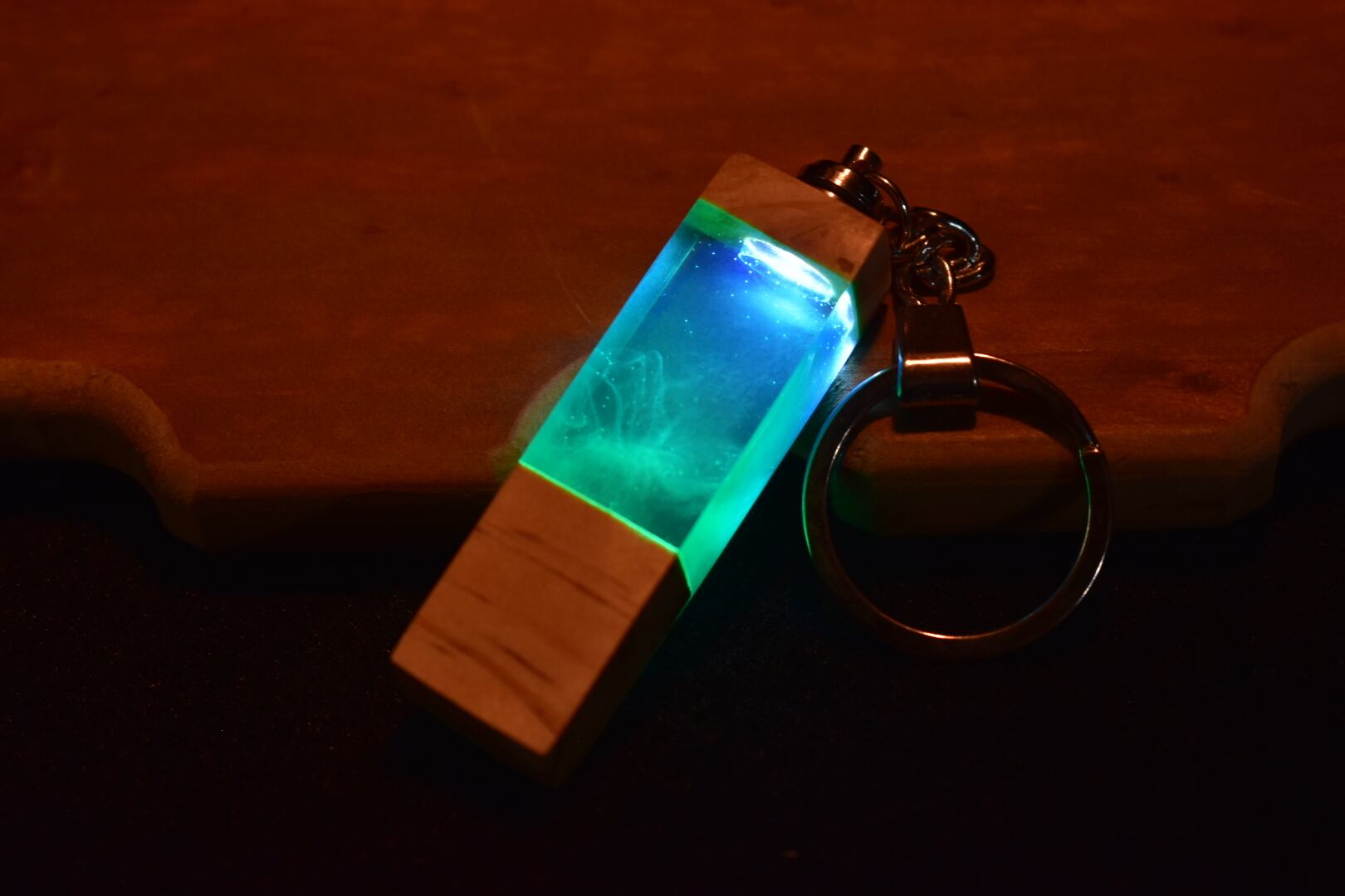 高品質の天然無垢材とクリアなレジンを組み合わせた、ウッドレジンキーホルダーです。