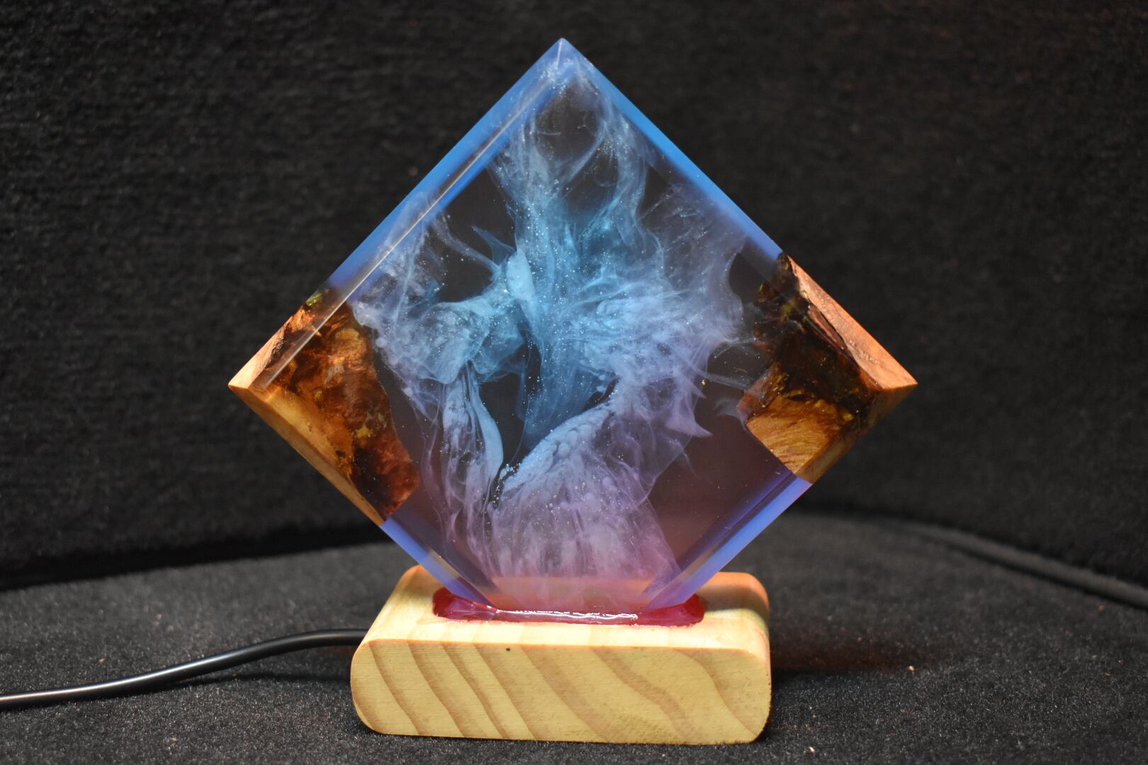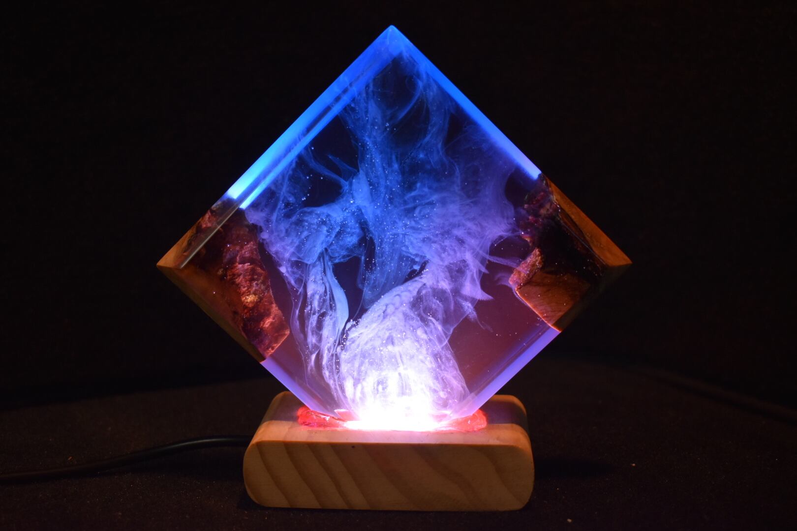 №230:ウッドレジンナイトランプ スクエア型 ウッドレジンナイトランプ スクエア型 エポキシ樹脂海 木製樹脂ランプ 間接照明 ギフト