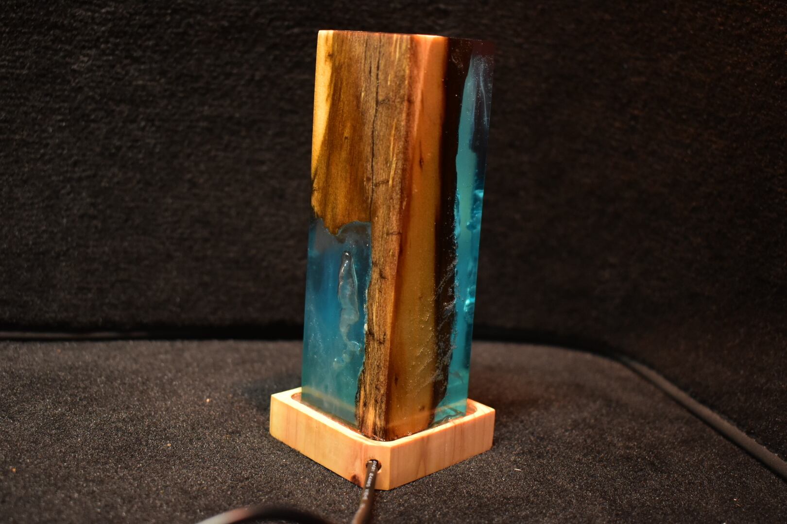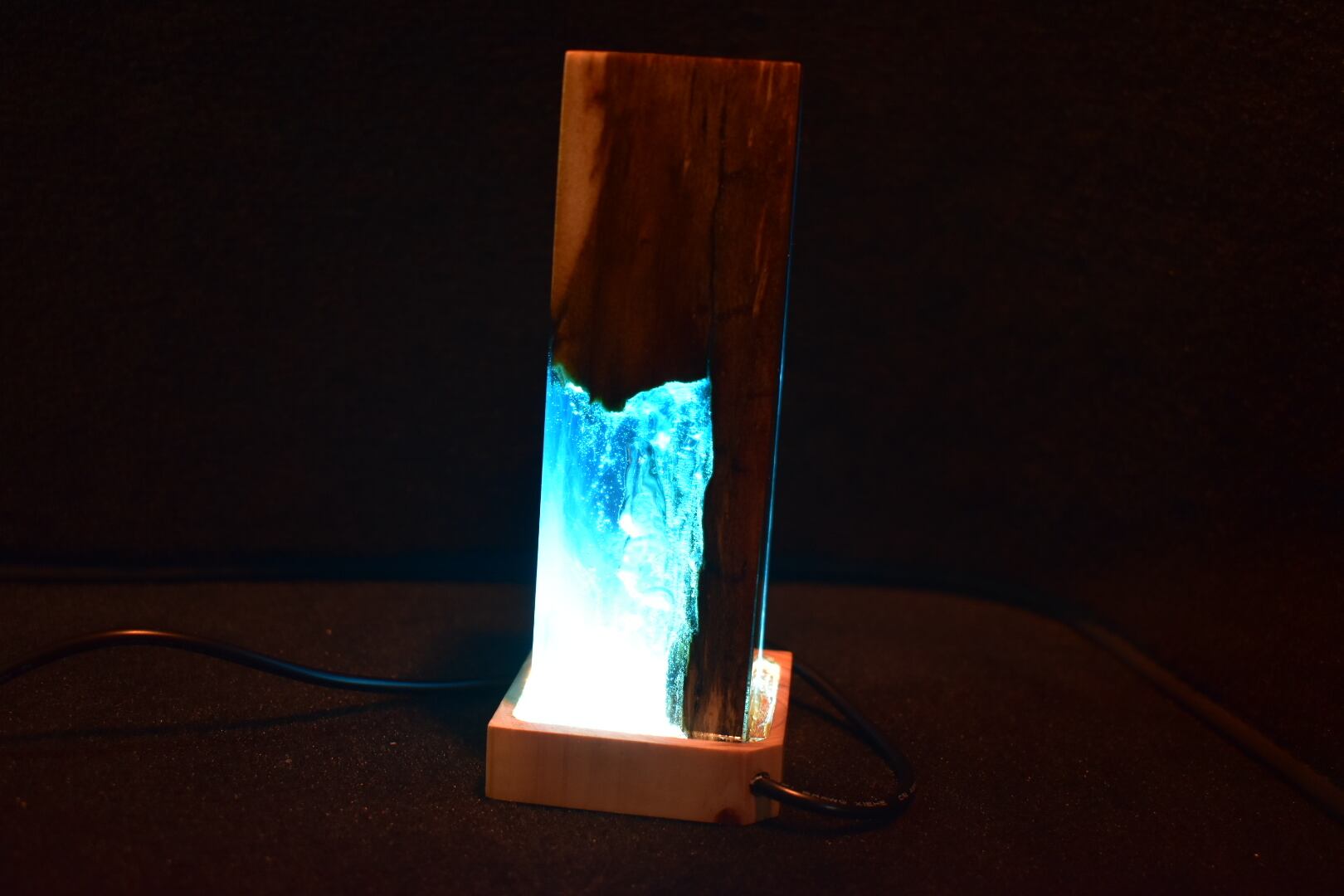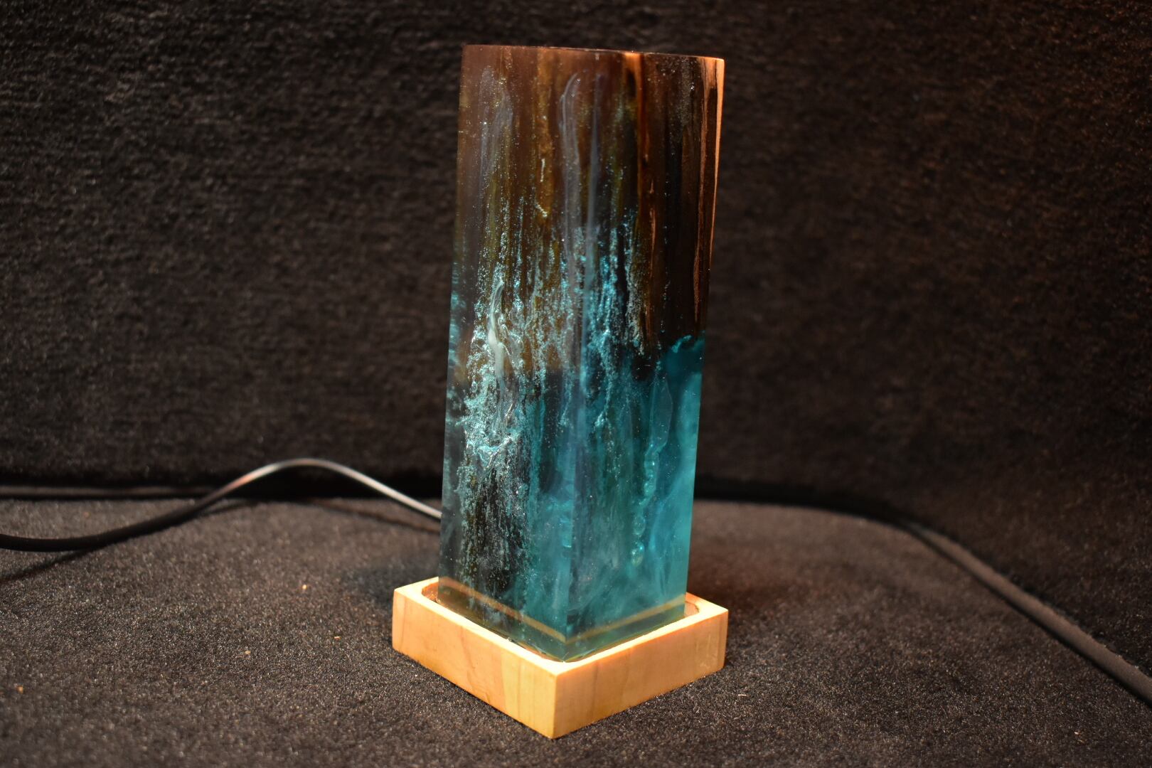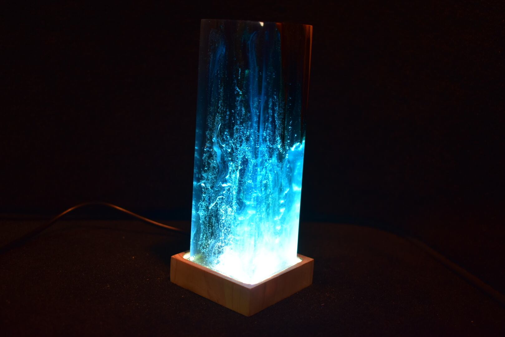 №0055:ウッドレジンナイトランプ ピラー型 ウッドレジンランプ エポキシ樹脂海 木製樹脂ランプ 間接照明 ギフト