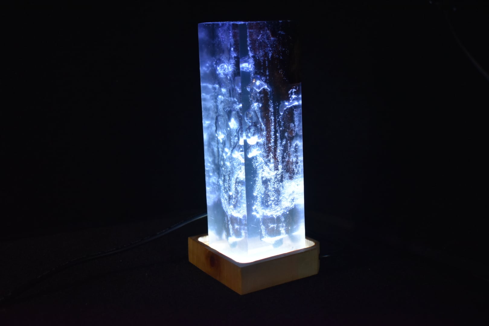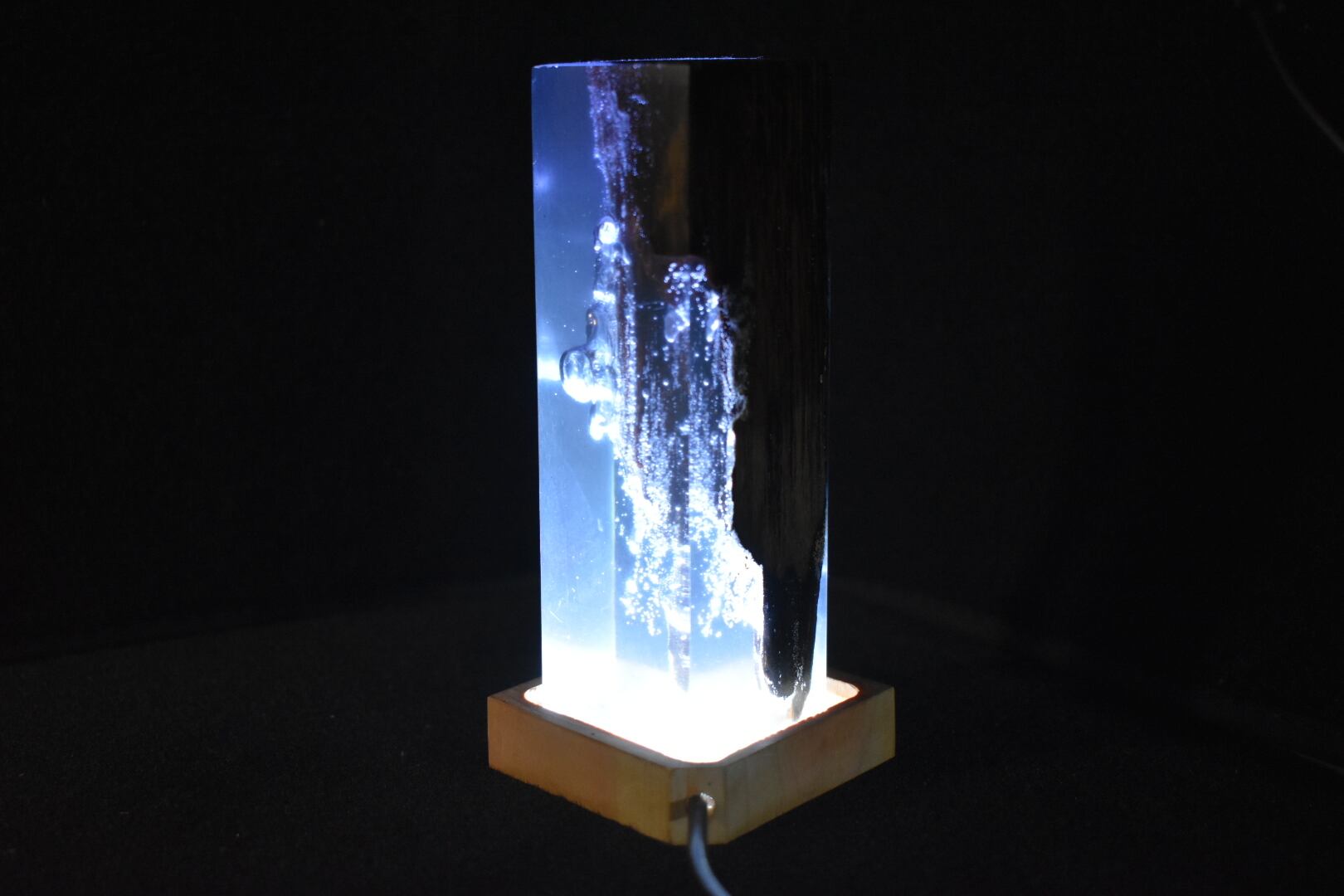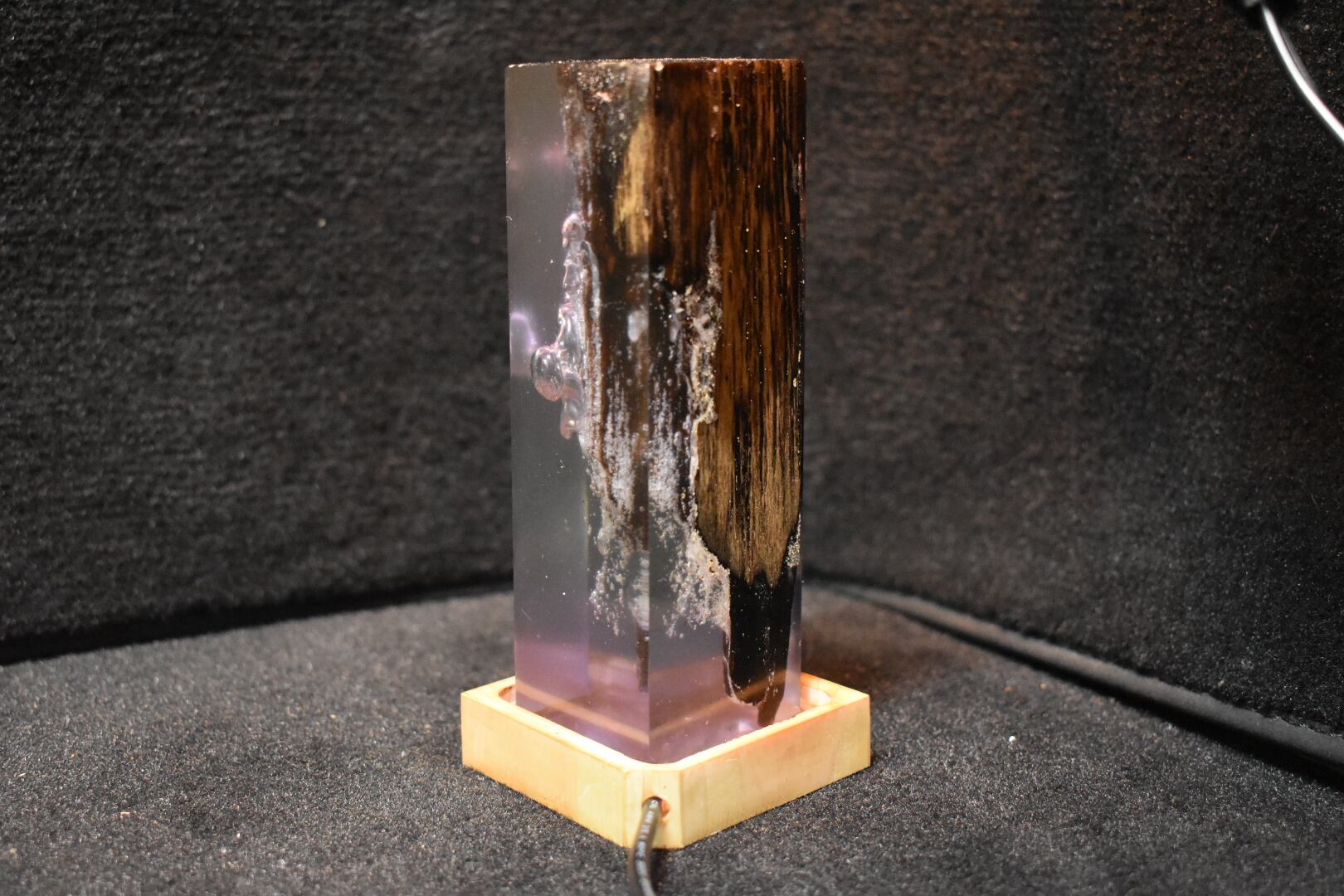 №0058:ウッドレジンナイトランプ ピラー型 ウッドレジンランプ エポキシ樹脂海 木製樹脂ランプ 間接照明 ギフト