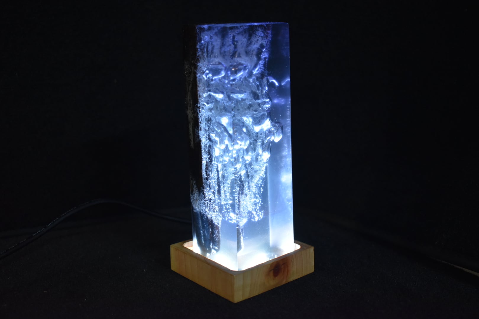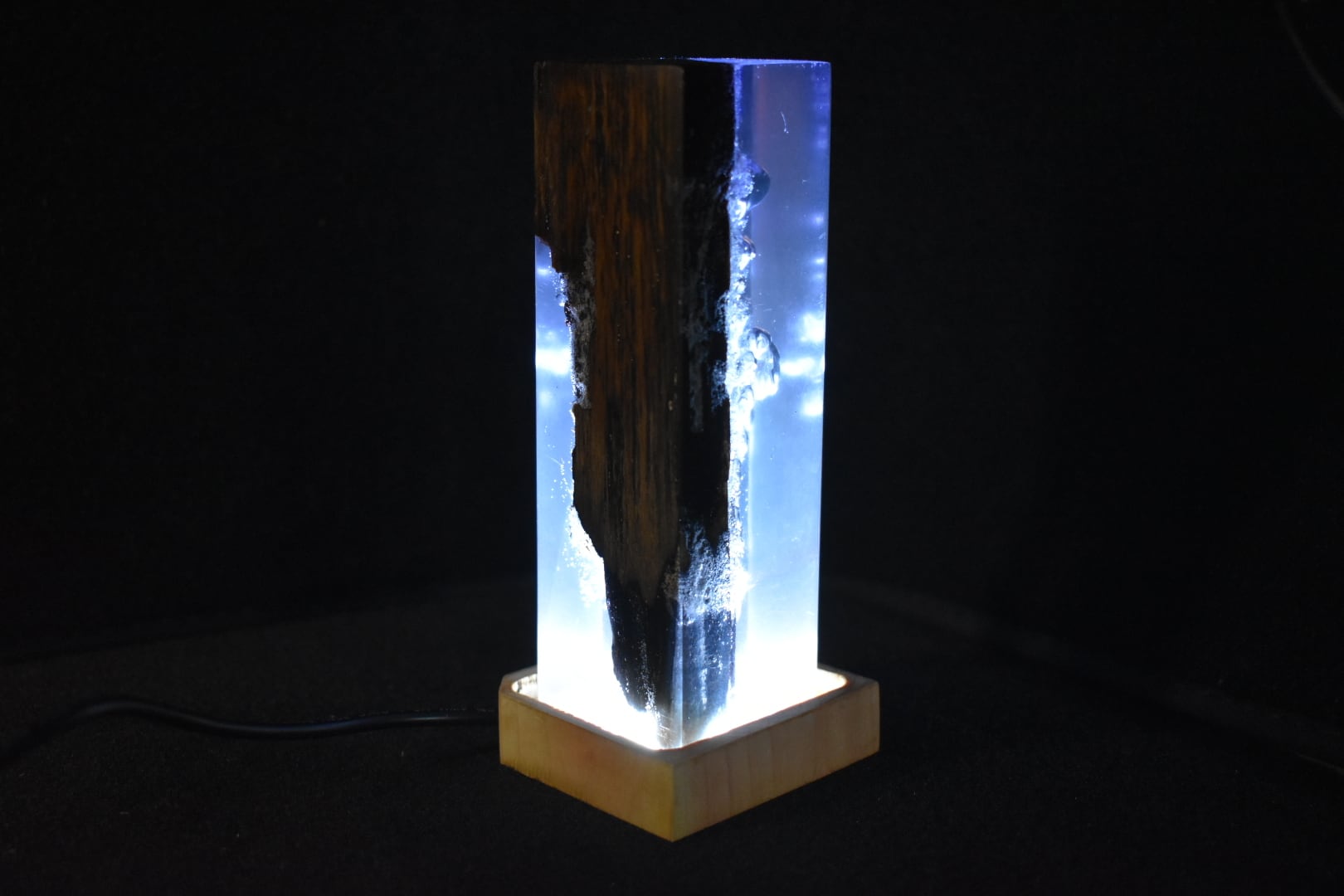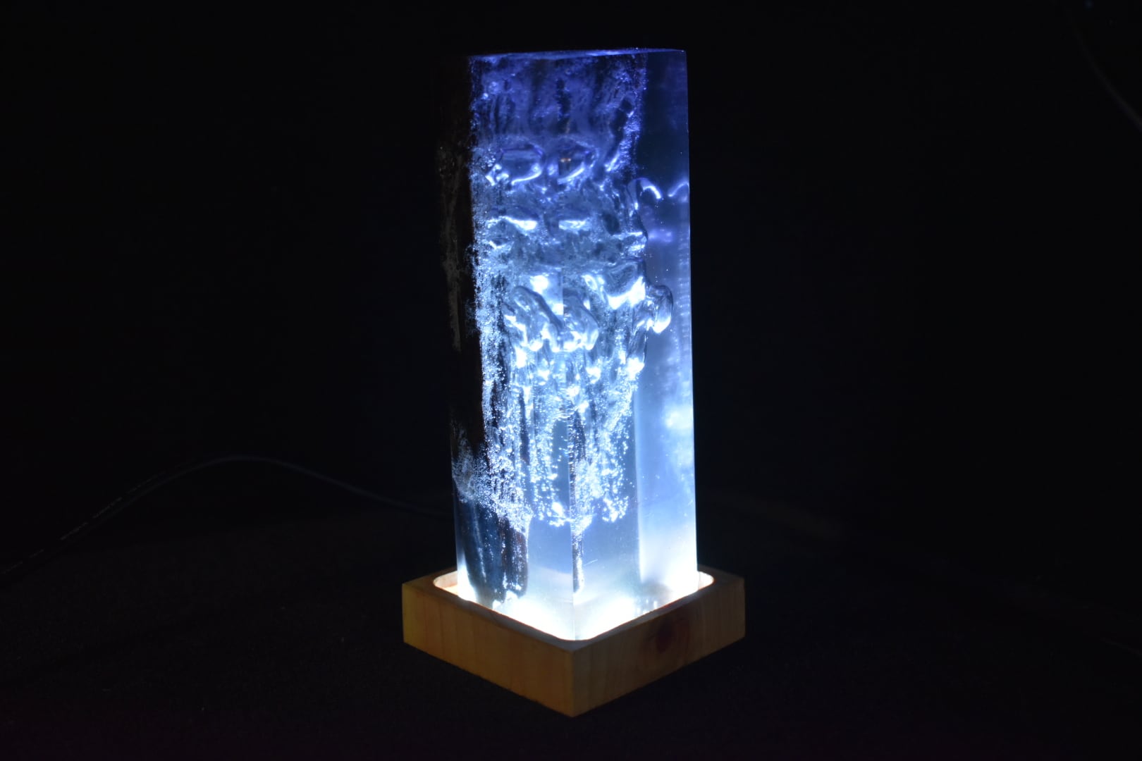 №0058:ウッドレジンナイトランプ ピラー型 ウッドレジンランプ エポキシ樹脂海 木製樹脂ランプ 間接照明 ギフト