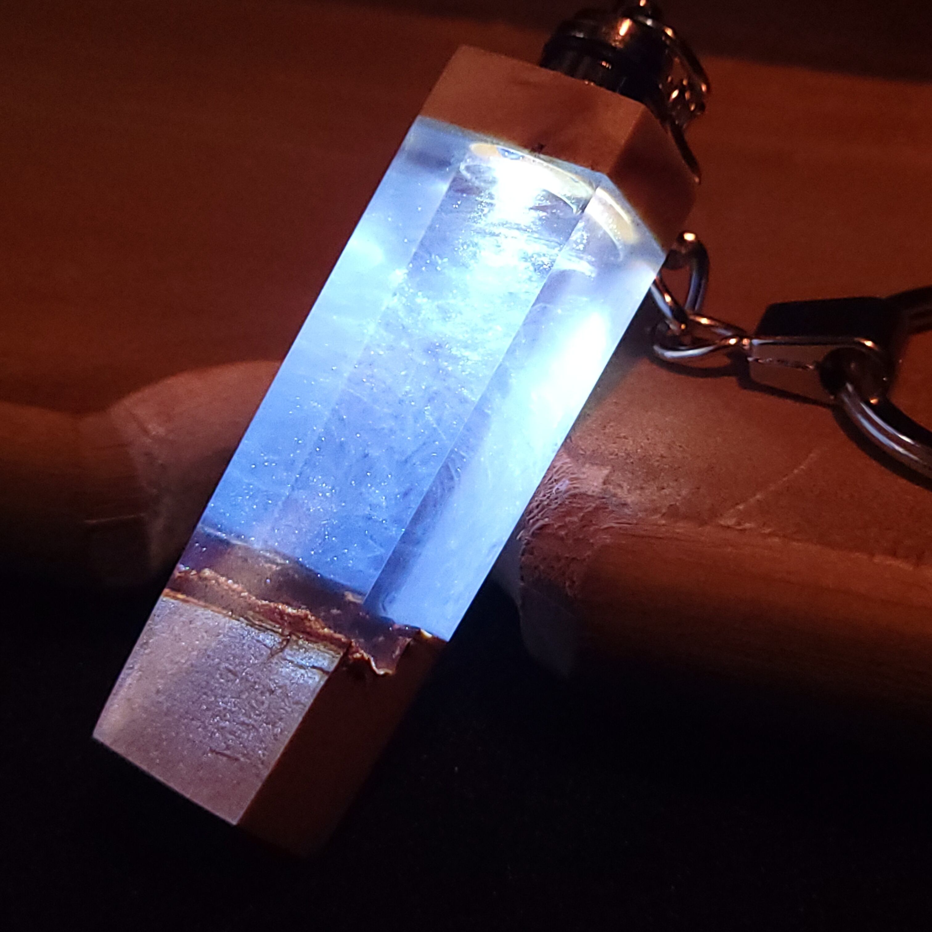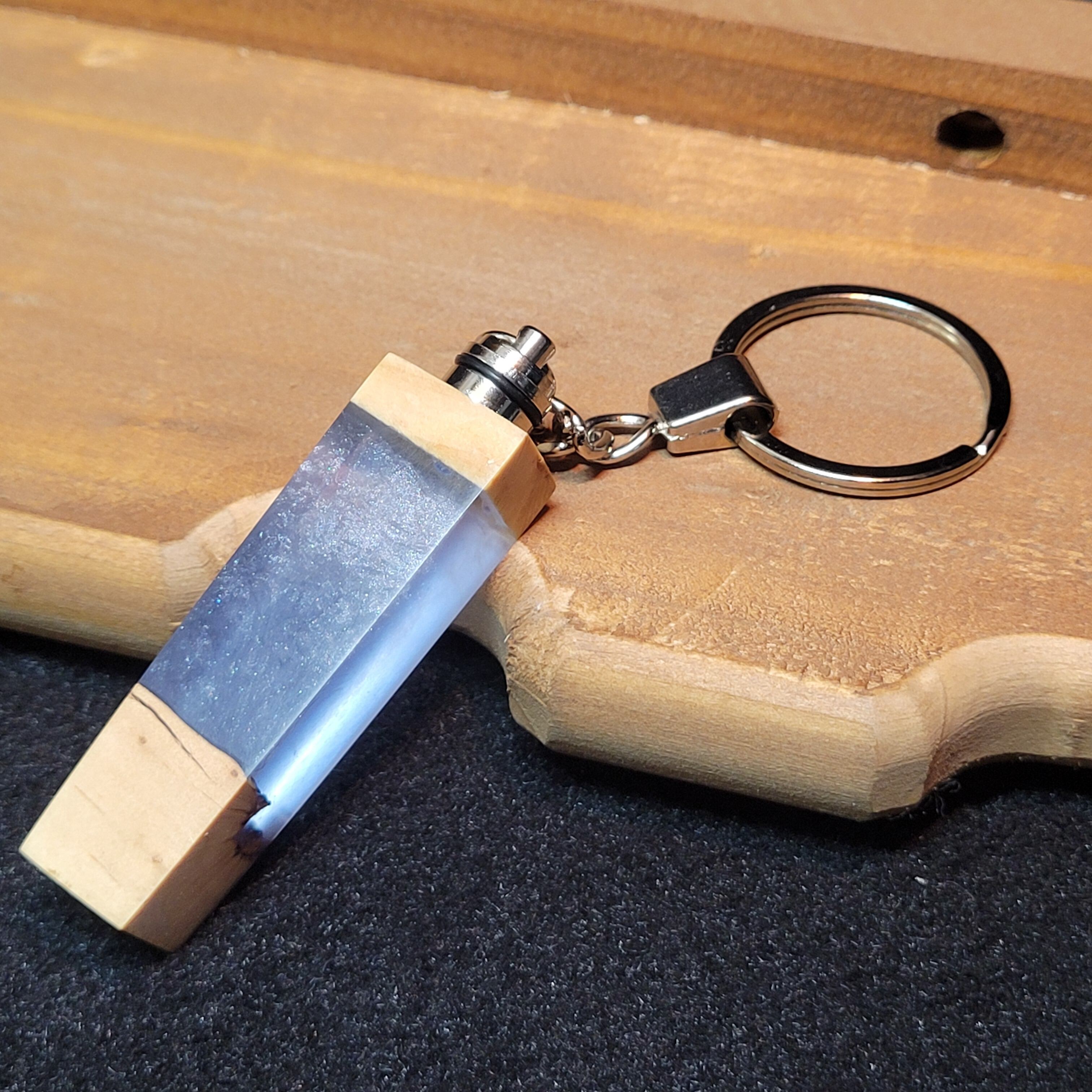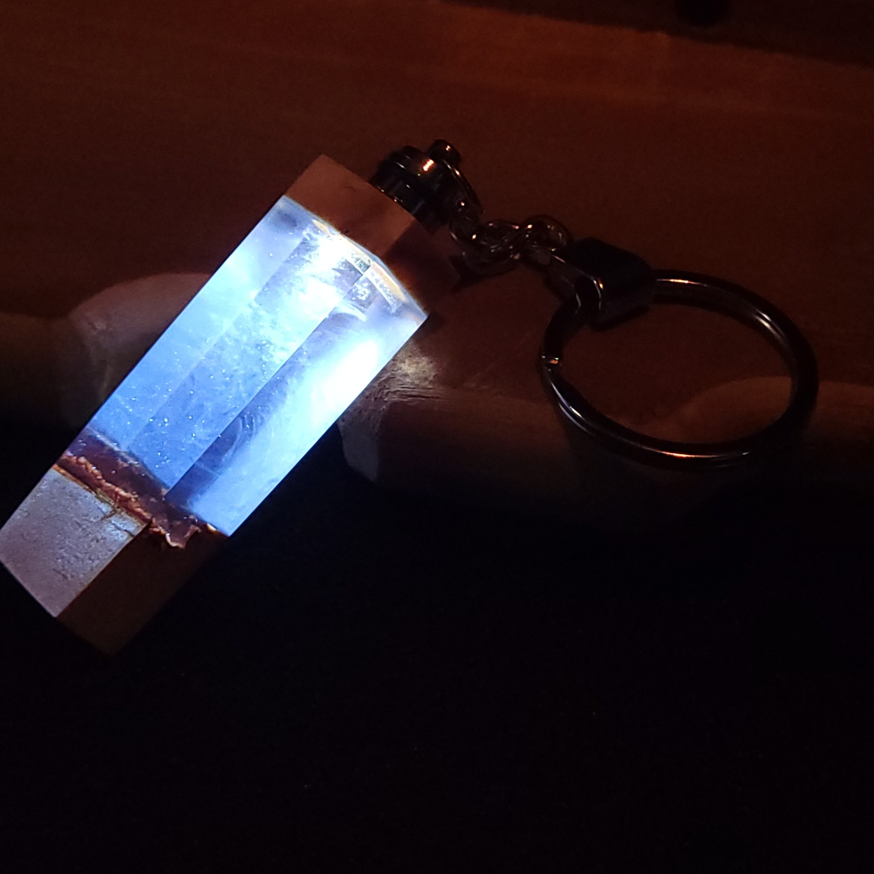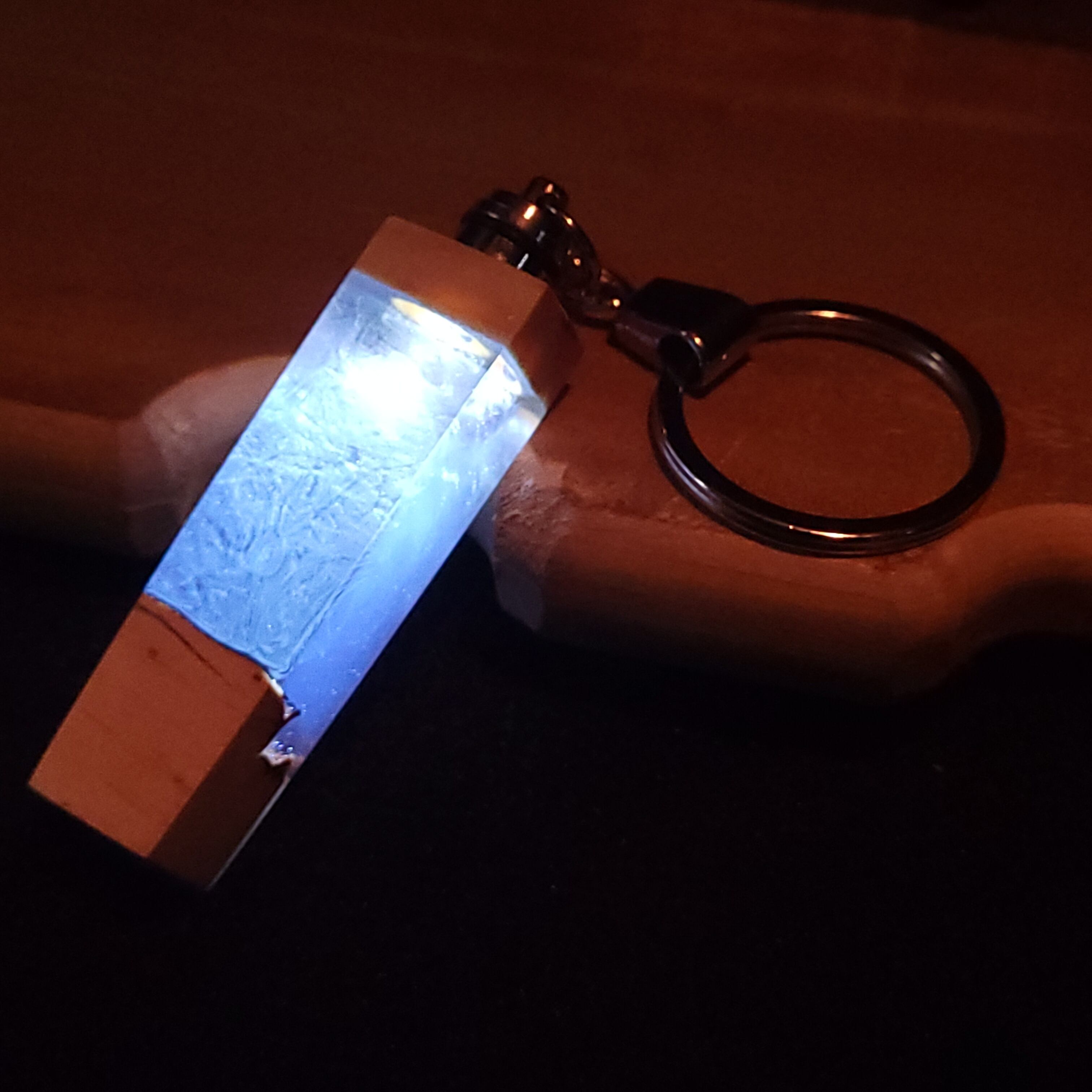 光るウッドレジンキーホルダー ホワイトブルー№4