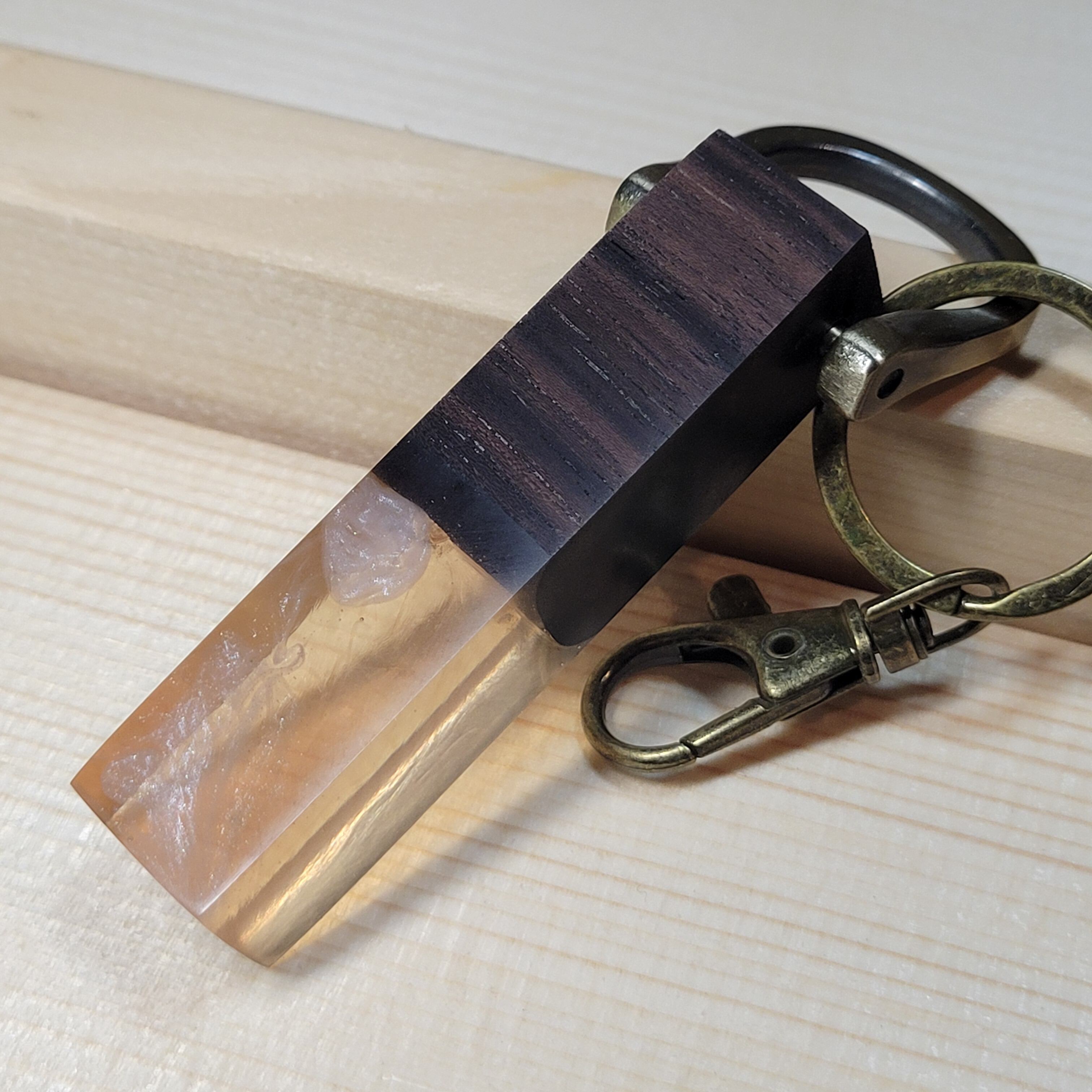 高品質の天然銘木とクリアなレジンを組み合わせた、ウッドレジンキーホルダー