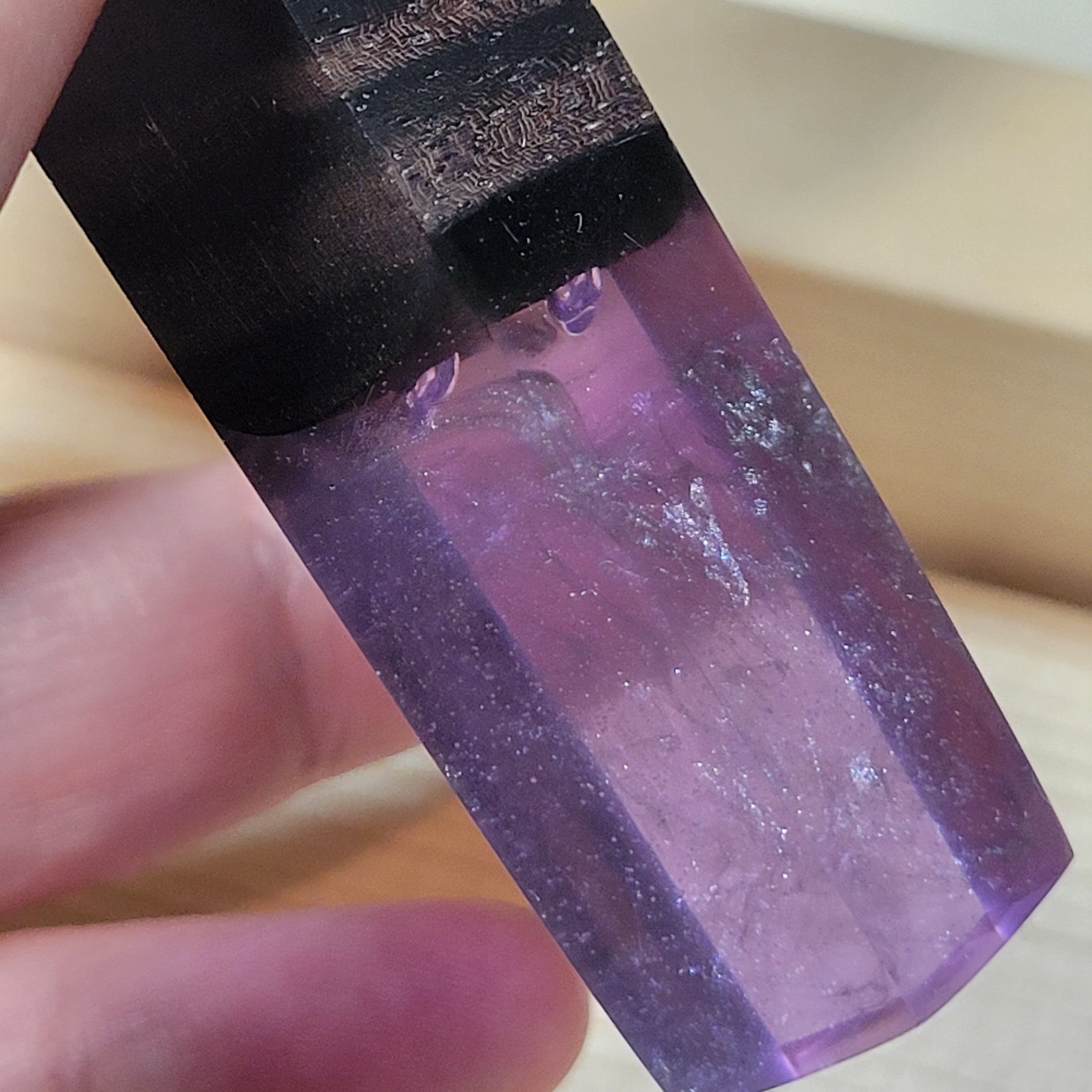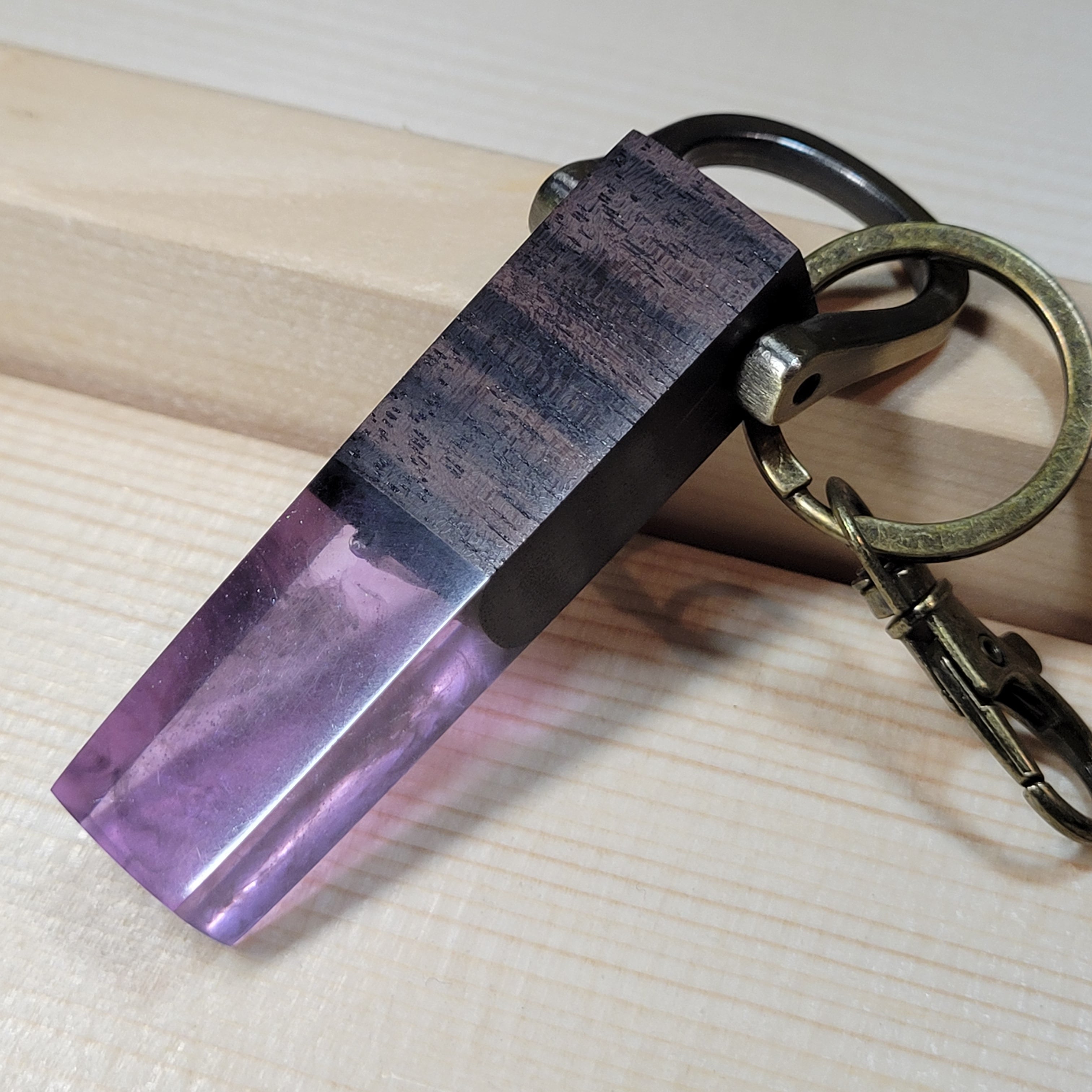 縞黒檀のウッドレジンキーホルダー ファントム・アメジスト №1