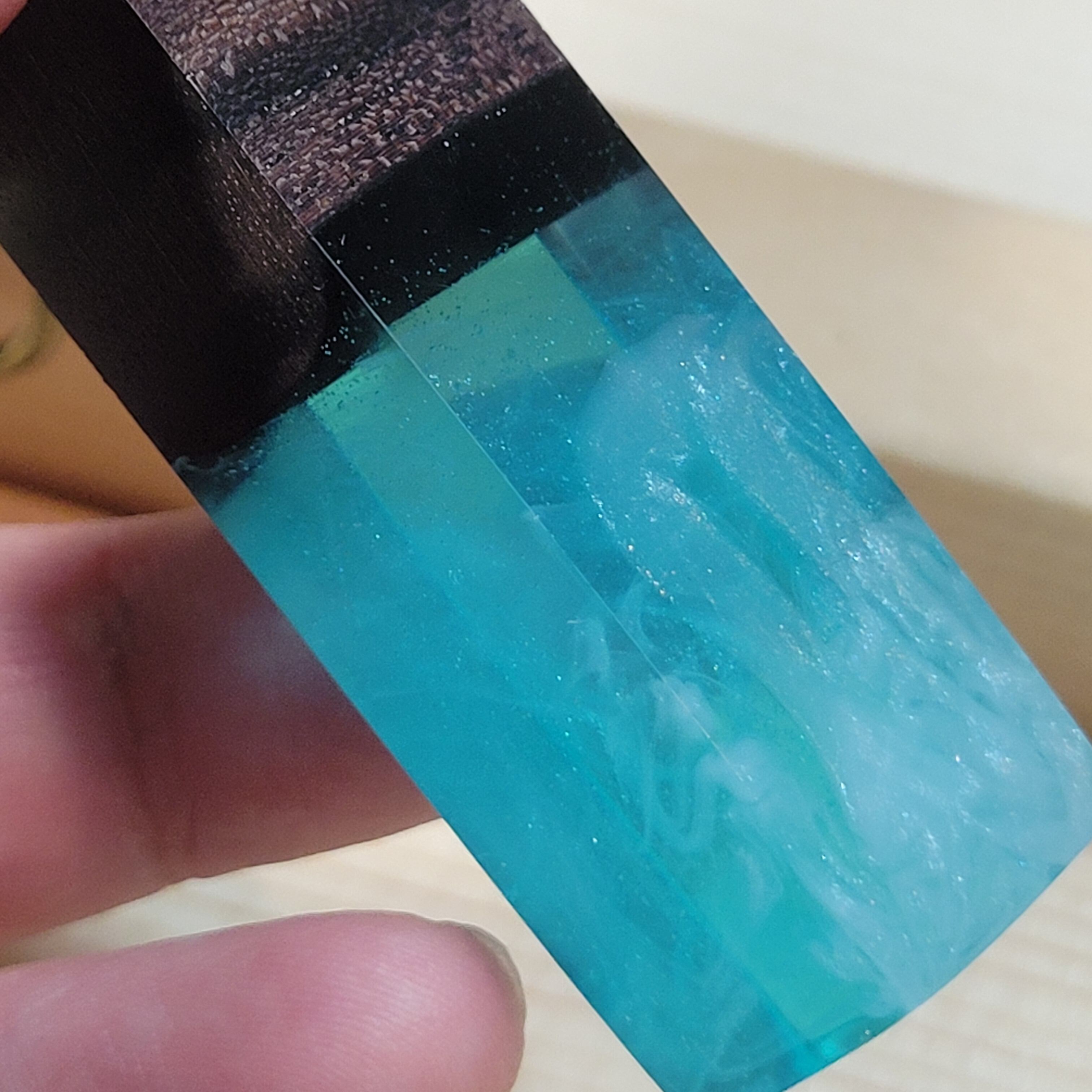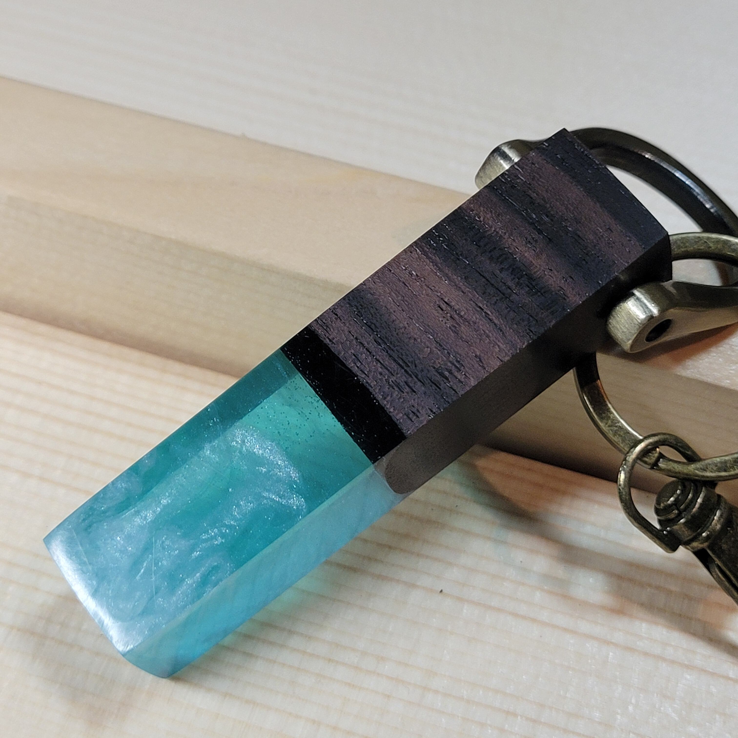 縞黒檀のウッドレジンキーホルダー ラグーン・ブルー №2