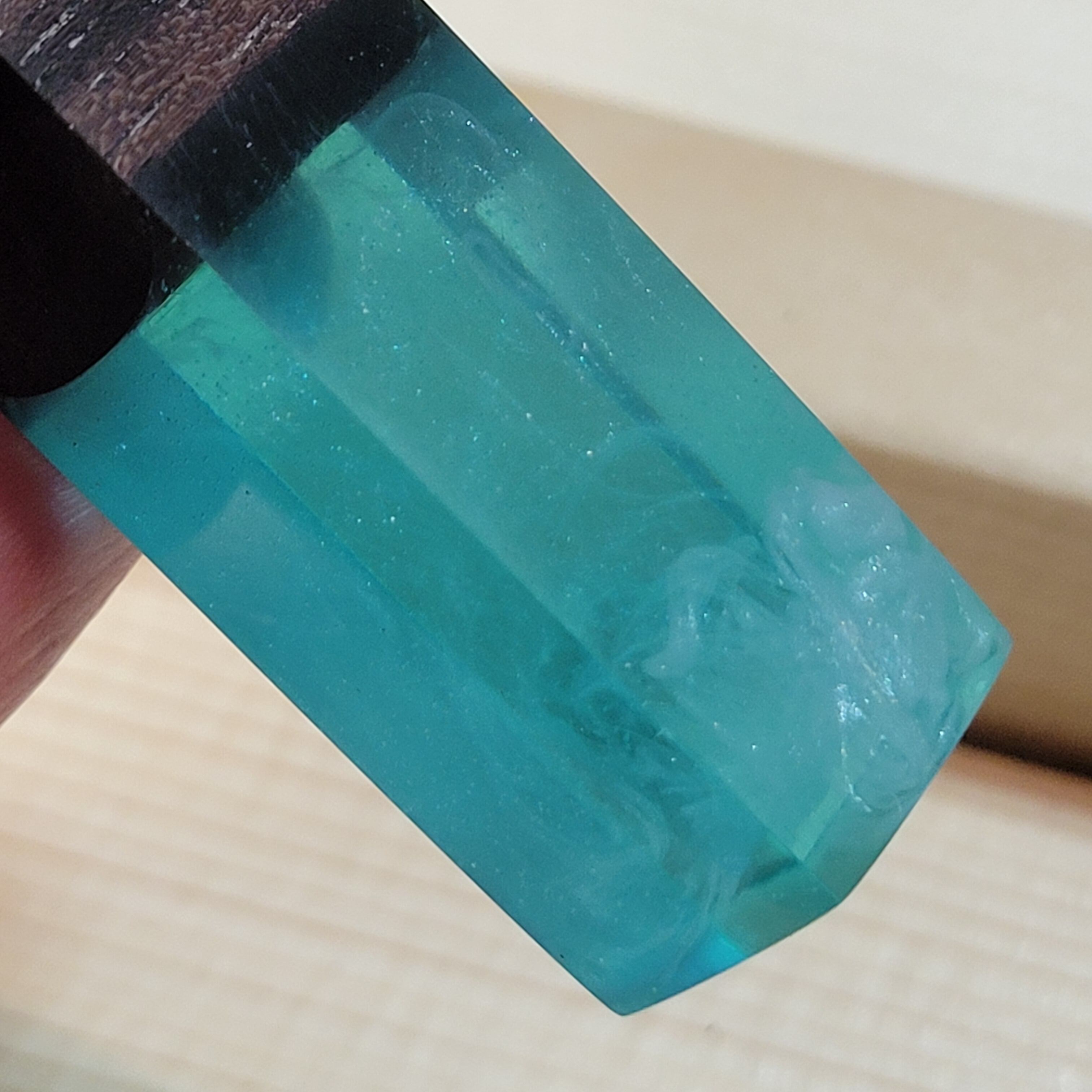 重厚でシックな黒檀の表情が、色鮮やかな透明レジンの美しさをより一層際立たせ、大人っぽく洗練された仕上がりになっています。
