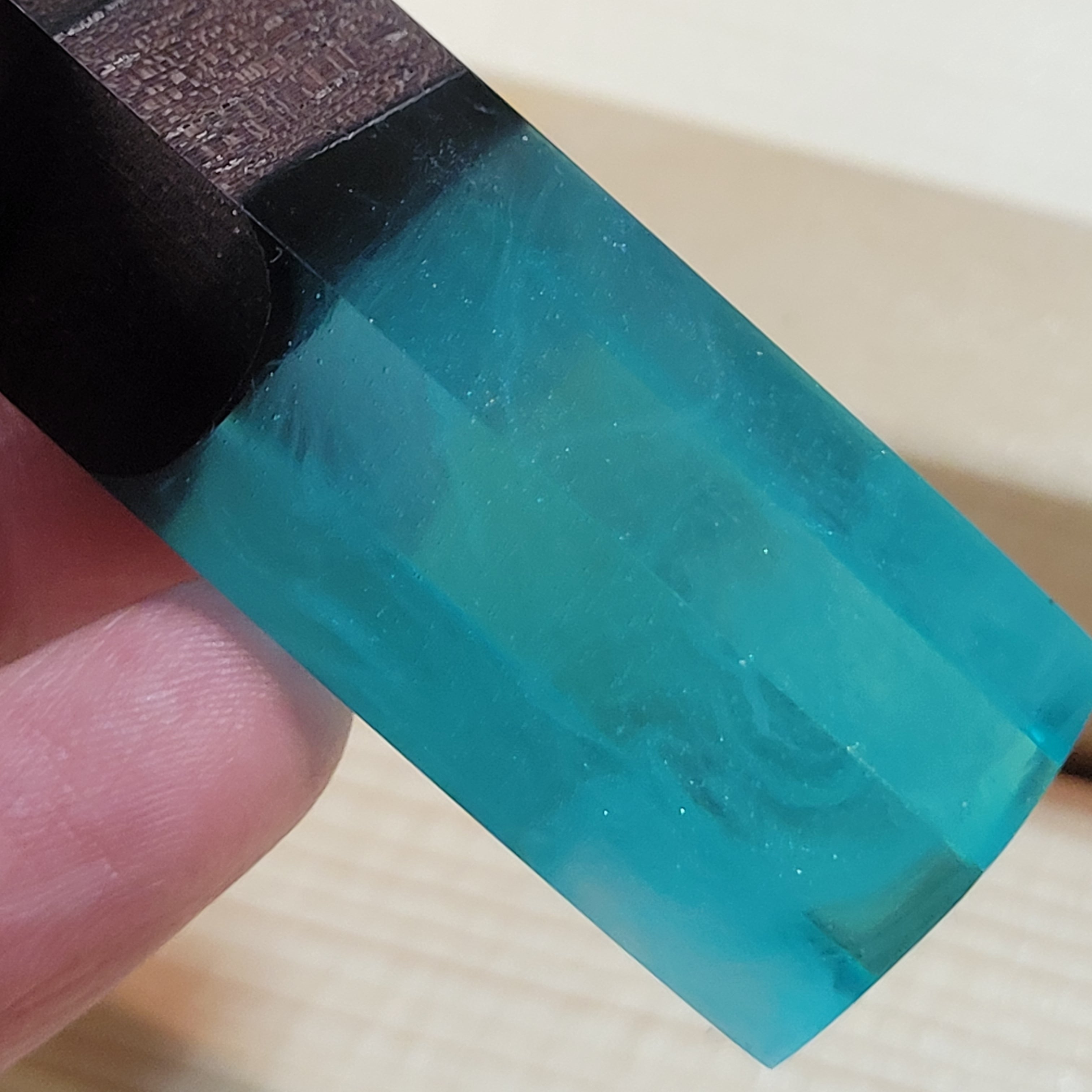 縞黒檀のウッドレジンキーホルダー ラグーン・ブルー №3