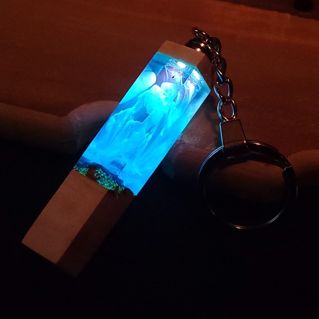 でっかい!光るウッドレジンキーホルダー ターコイズ